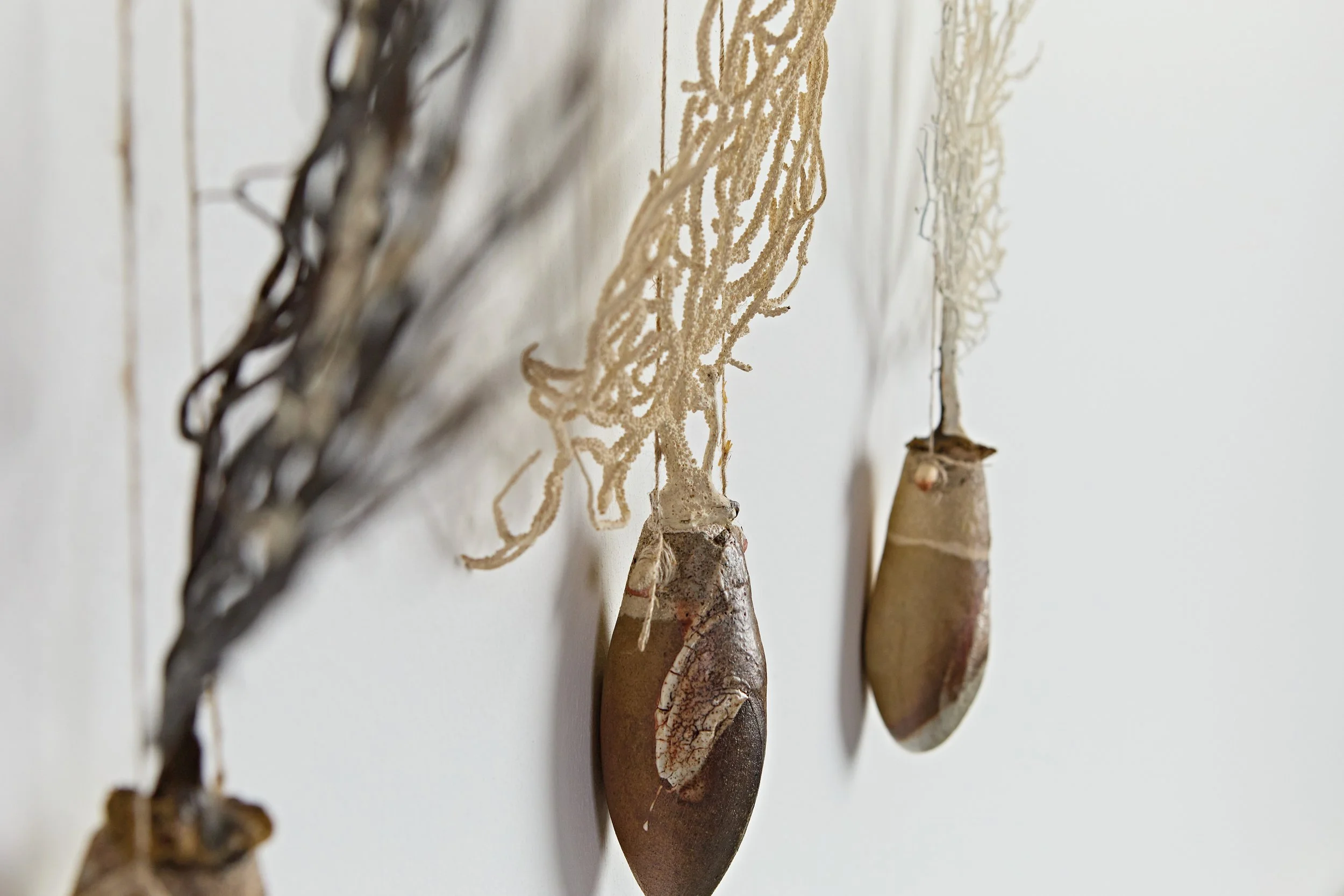 I work primarily in porcelain, integrating man-made and natural debris gathered while beachcombing. These objects range from fossils to washed-up coral and artefacts, such as old ship-building nails – all created at remote moments in geological, ecological and human time.